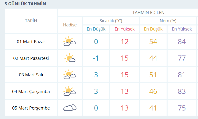 BURSA İÇİN 5 GÜNLÜK HAVA DURUMU TAHMİNİ