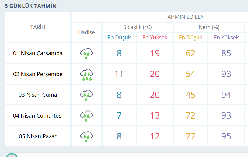 BURSA İÇİN 5 GÜNLÜK HAVA DURUMU TAHMİNİ