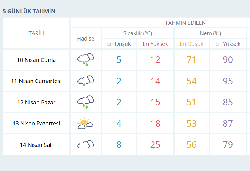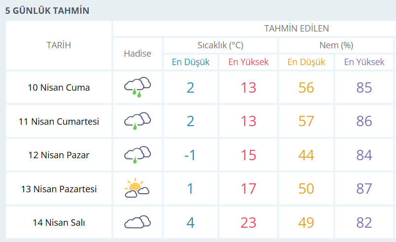 BURSA İÇİN 5 GÜNLÜK HAVA DURUMU TAHMİNİ