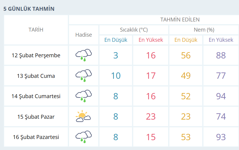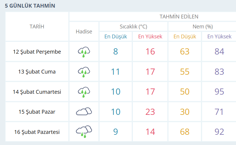 BURSA İÇİN 5 GÜNLÜK HAVA DURUMU TAHMİNİ