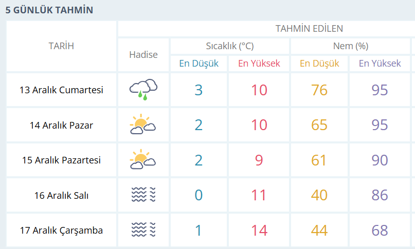BURSA İÇİN 5 GÜNLÜK HAVA DURUMU TAHMİNİ