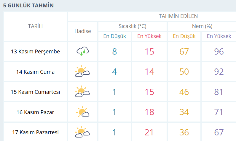 BURSA İÇİN 5 GÜNLÜK HAVA DURUMU TAHMİNİ