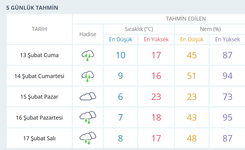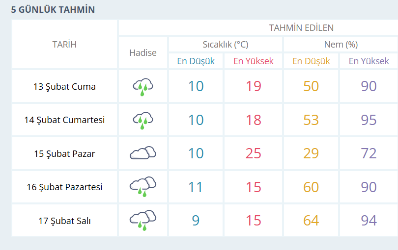 BURSA İÇİN 5 GÜNLÜK HAVA DURUMU TAHMİNİ
