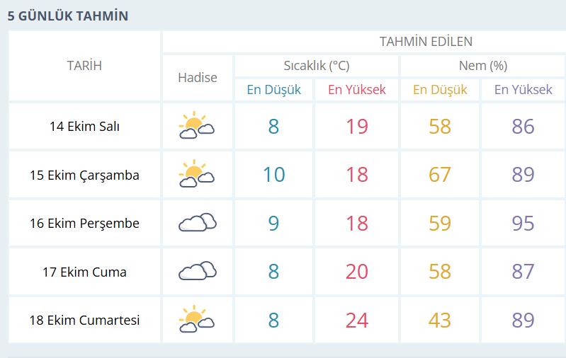 BURSA İÇİN 5 GÜNLÜK HAVA DURUMU TAHMİNİ