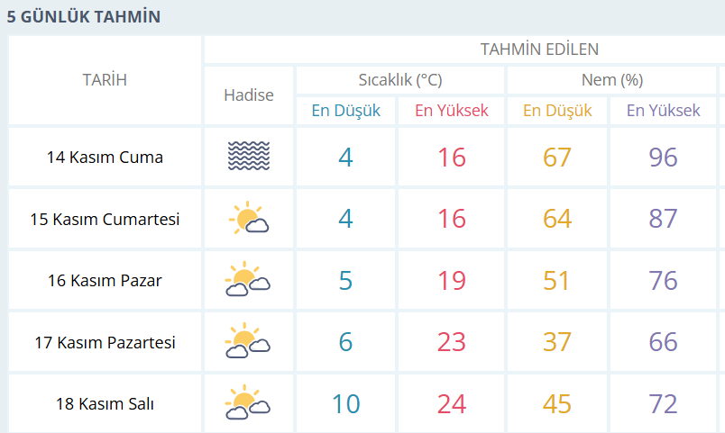 BURSA İÇİN 5 GÜNLÜK HAVA DURUMU TAHMİNİ