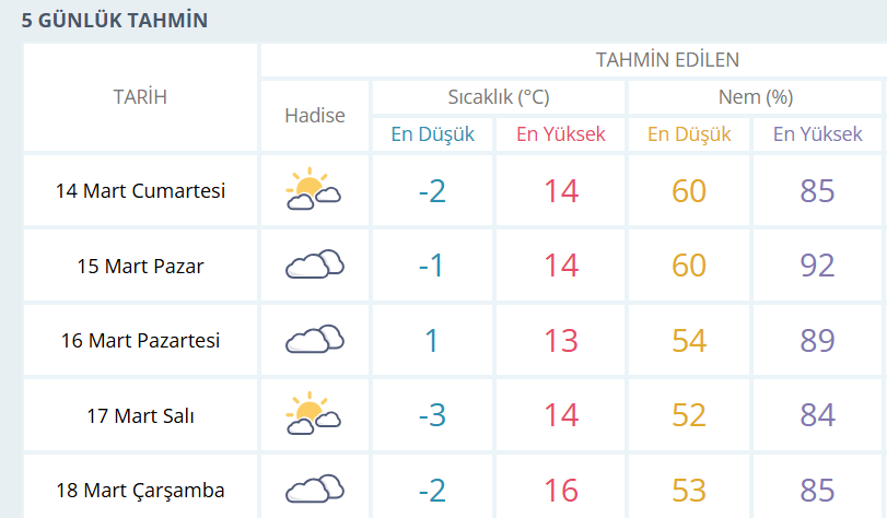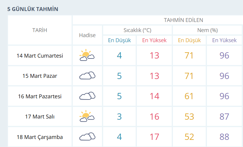 BURSA İÇİN 5 GÜNLÜK HAVA DURUMU TAHMİNİ