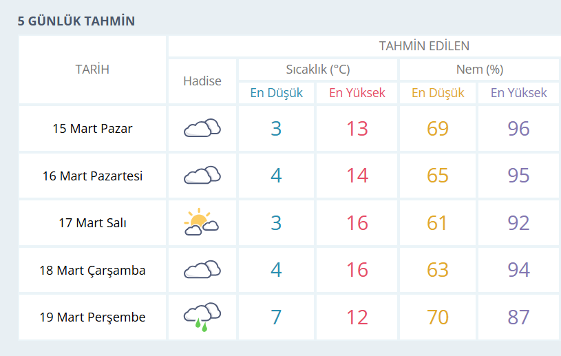BURSA İÇİN 5 GÜNLÜK HAVA DURUMU TAHMİNİ