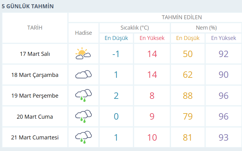 BURSA İÇİN 5 GÜNLÜK HAVA DURUMU TAHMİNİ