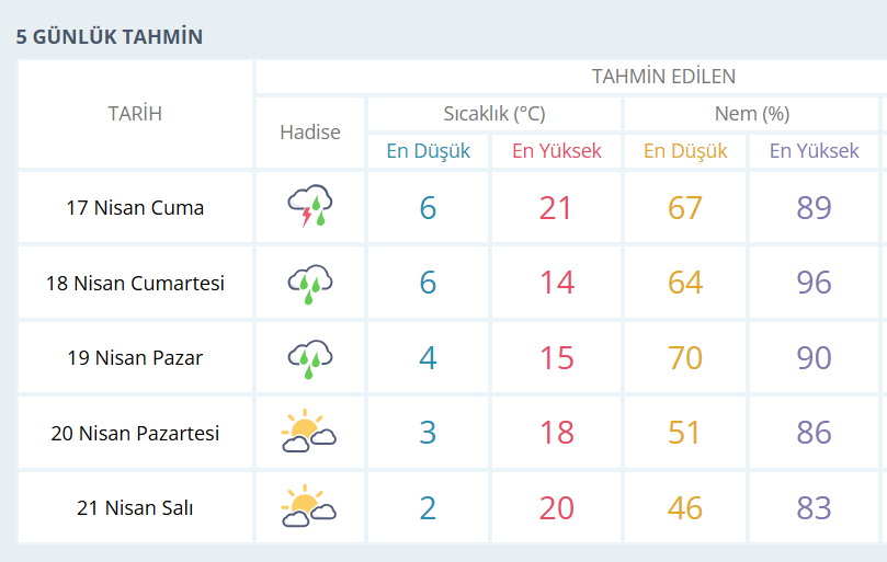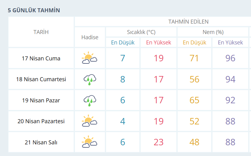 BURSA İÇİN 5 GÜNLÜK HAVA DURUMU TAHMİNİ