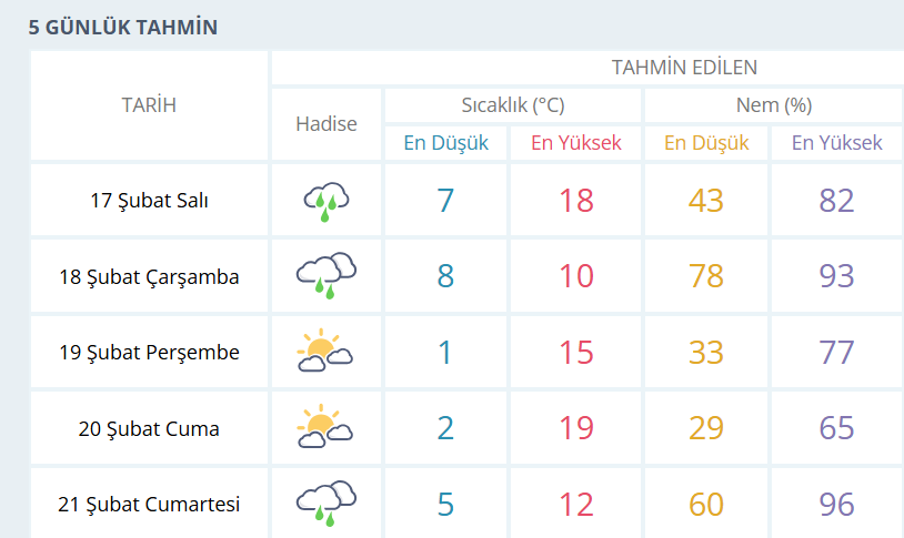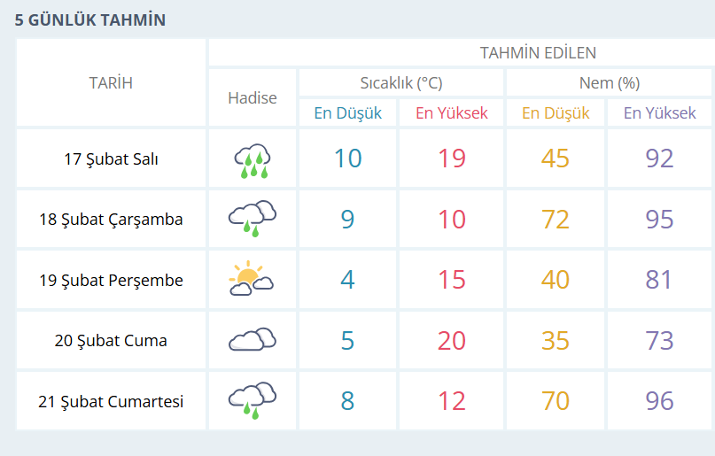 BURSA İÇİN 5 GÜNLÜK HAVA DURUMU TAHMİNİ