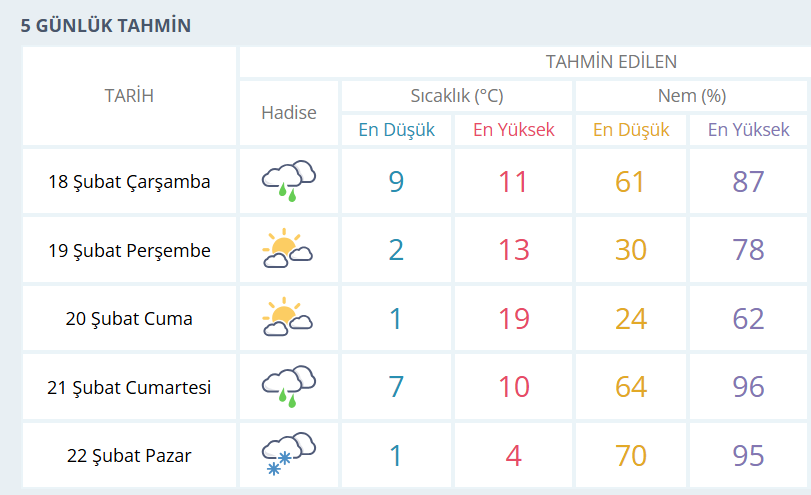 BURSA İÇİN 5 GÜNLÜK HAVA DURUMU TAHMİNİ
