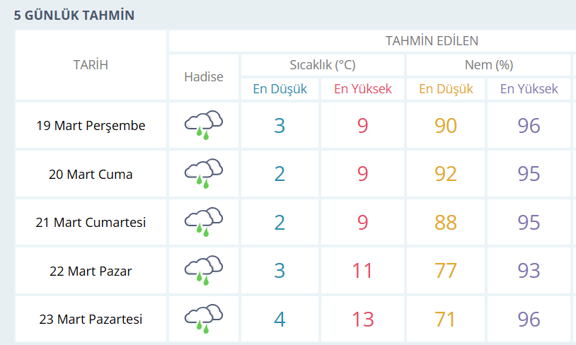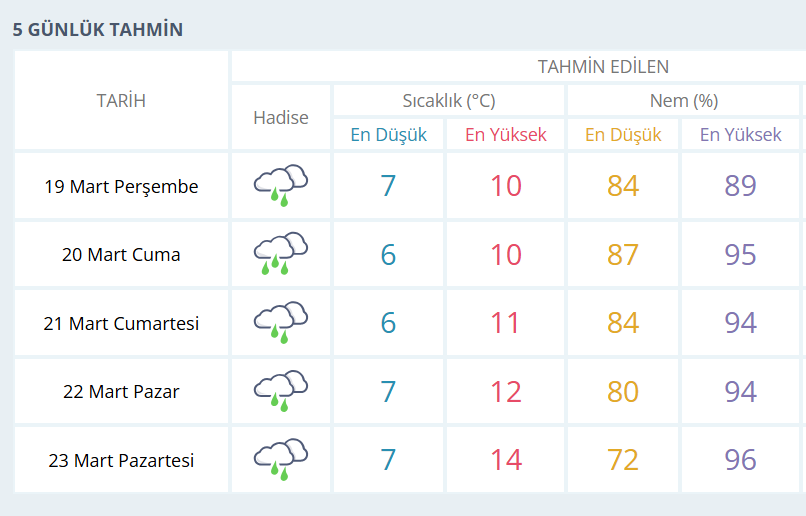 BURSA İÇİN 5 GÜNLÜK HAVA DURUMU TAHMİNİ