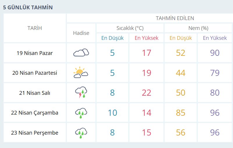 BURSA İÇİN 5 GÜNLÜK HAVA DURUMU TAHMİNİ