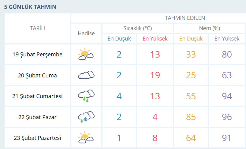 BURSA İÇİN 5 GÜNLÜK HAVA DURUMU TAHMİNİ