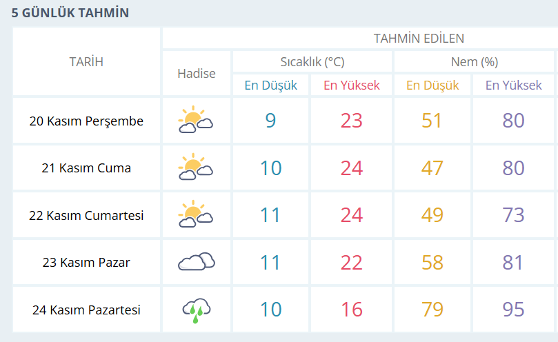BURSA İÇİN 5 GÜNLÜK HAVA DURUMU TAHMİNİ
