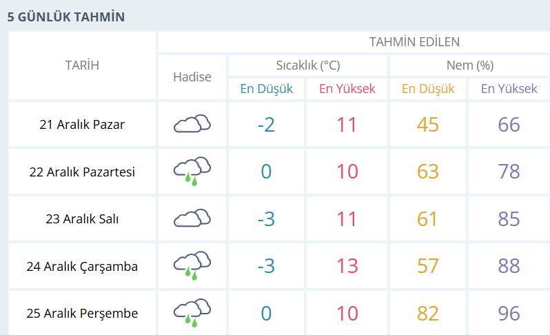 BURSA İÇİN 5 GÜNLÜK HAVA DURUMU TAHMİNİ