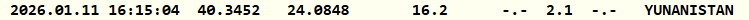 Kandilli Rasathanesi Yunanistan'da meydana gelen depremin ardından resmi internet sitesi üzerinden verileri paylaştı. Verilerde depremin saat 16.15'te 2.1 büyüklüğünde gerçekleştiği belirtildi. Depremin derinliği 16.2 kilometre olarak açıklandı.
