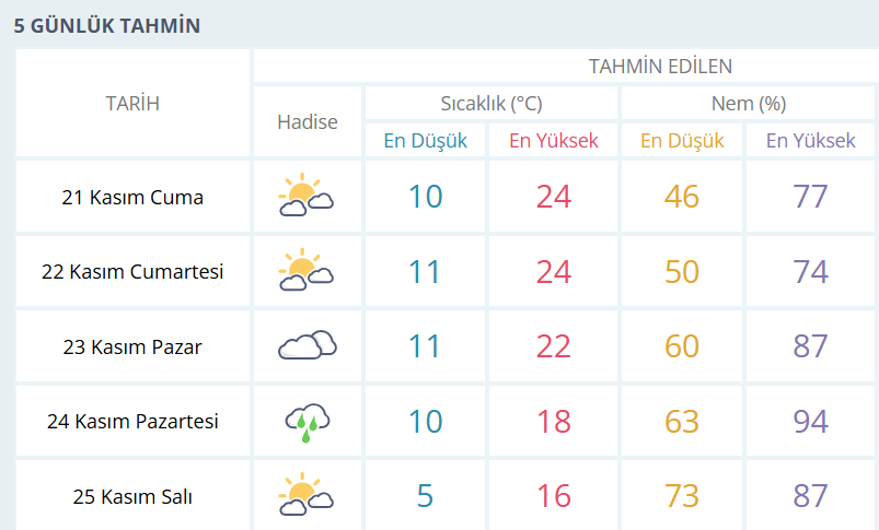 BURSA İÇİN 5 GÜNLÜK HAVA DURUMU TAHMİNİ