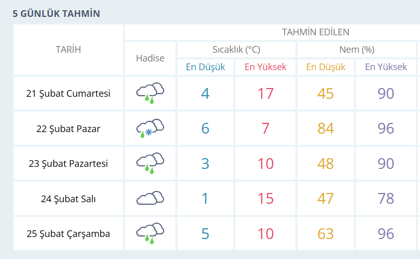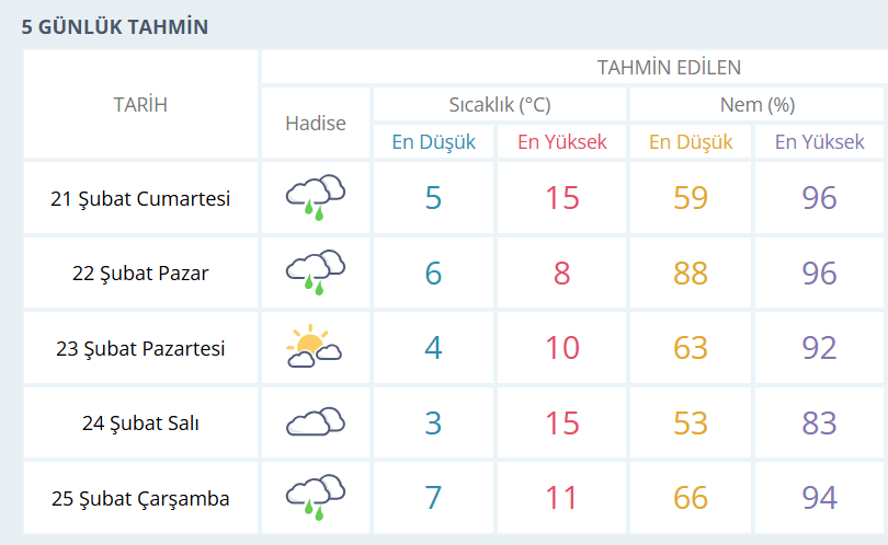 BURSA İÇİN 5 GÜNLÜK HAVA DURUMU TAHMİNİ