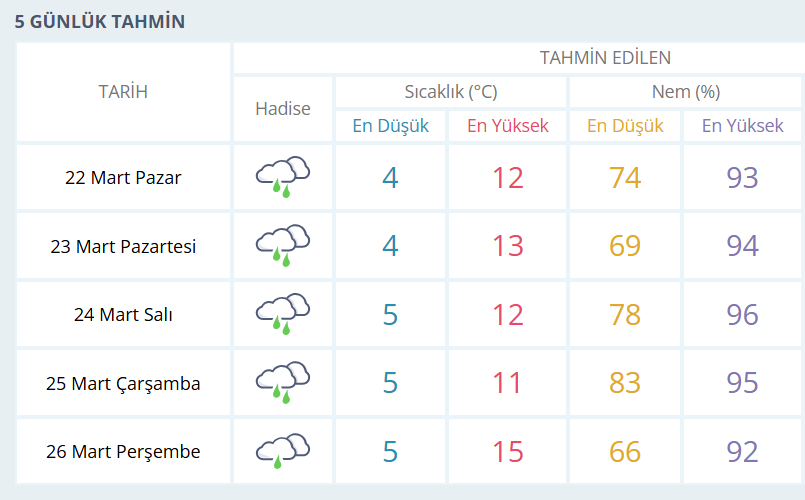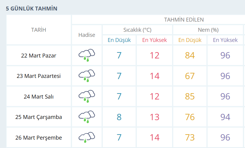 BURSA İÇİN 5 GÜNLÜK HAVA DURUMU TAHMİNİ