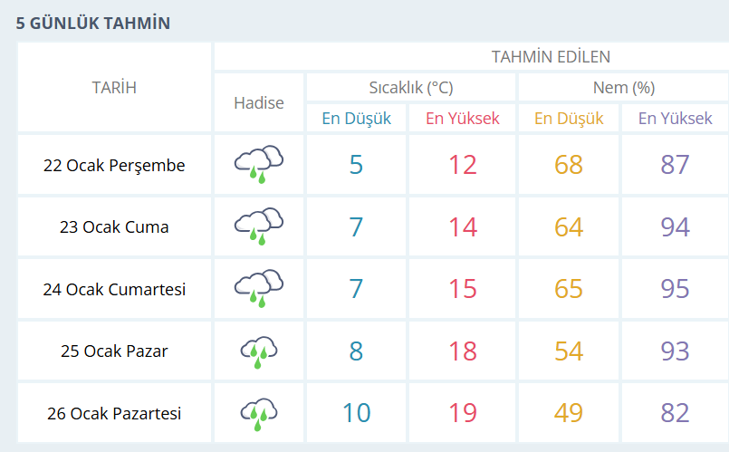 BURSA İÇİN 5 GÜNLÜK HAVA DURUMU TAHMİNİ