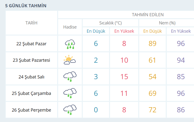 BURSA İÇİN 5 GÜNLÜK HAVA DURUMU TAHMİNİ
