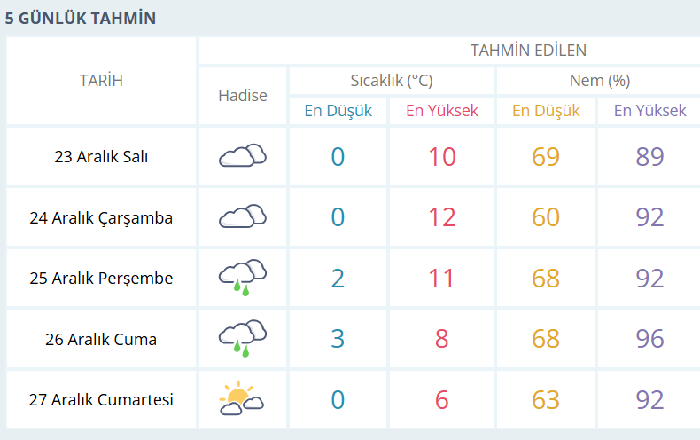 BURSA İÇİN 5 GÜNLÜK HAVA DURUMU TAHMİNİ