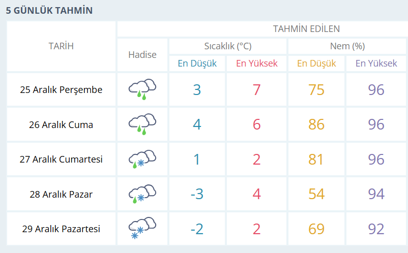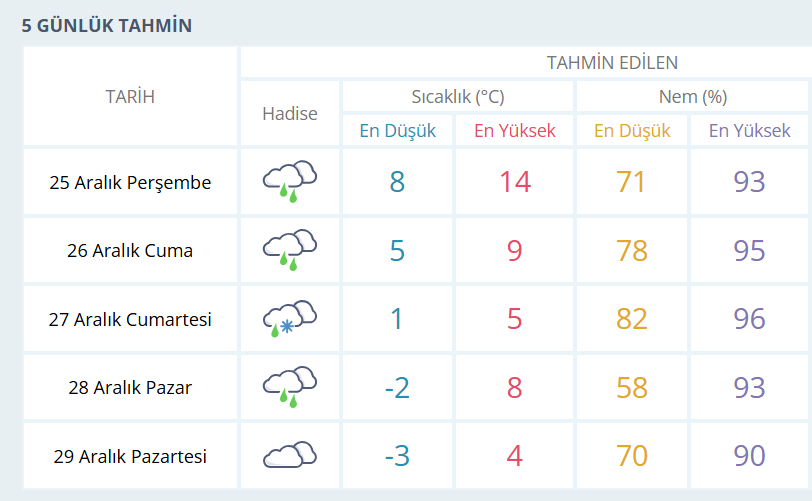 BURSA İÇİN 5 GÜNLÜK HAVA DURUMU TAHMİNİ