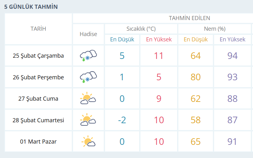 BURSA İÇİN 5 GÜNLÜK HAVA DURUMU TAHMİNİ