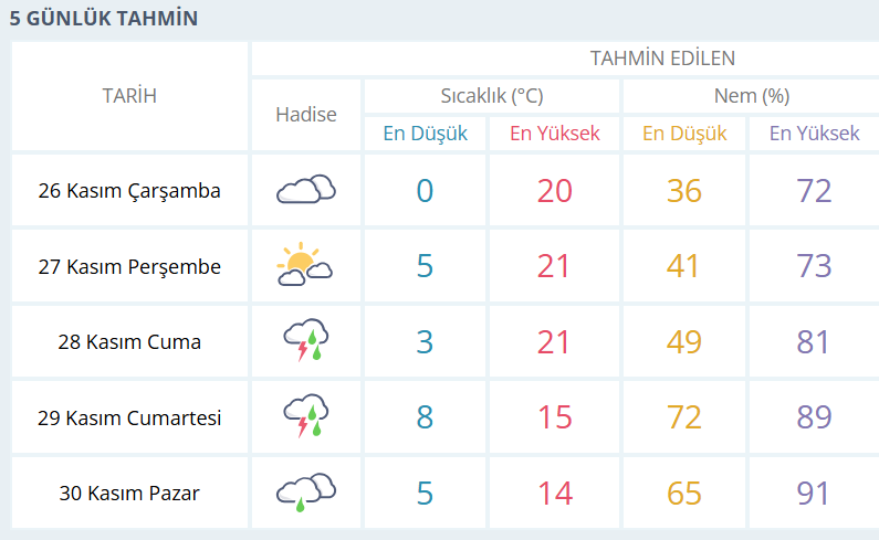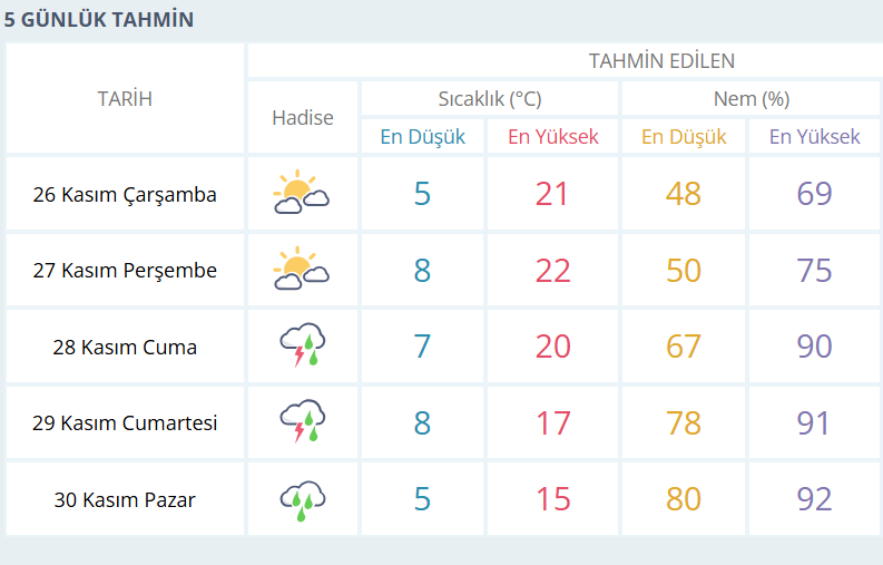 BURSA İÇİN 5 GÜNLÜK HAVA DURUMU TAHMİNİ