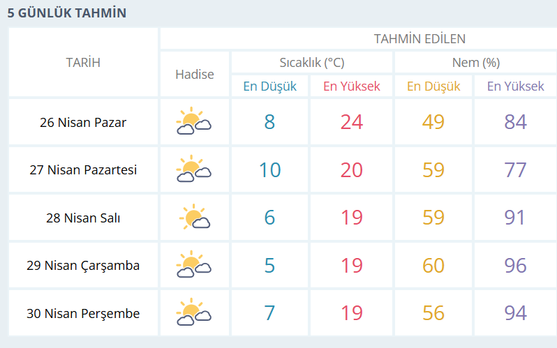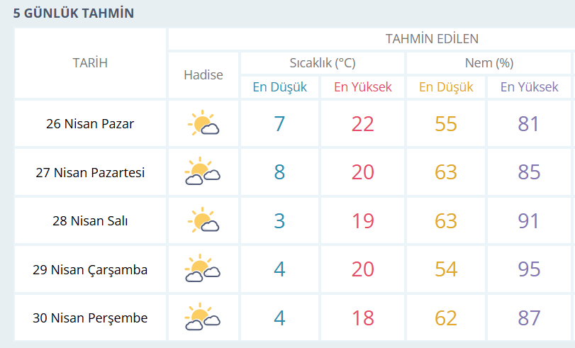 BURSA İÇİN 5 GÜNLÜK HAVA DURUMU TAHMİNİ
