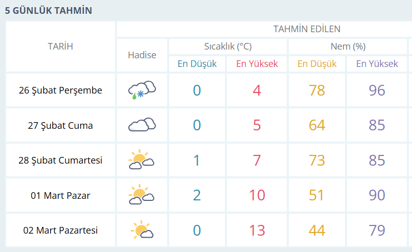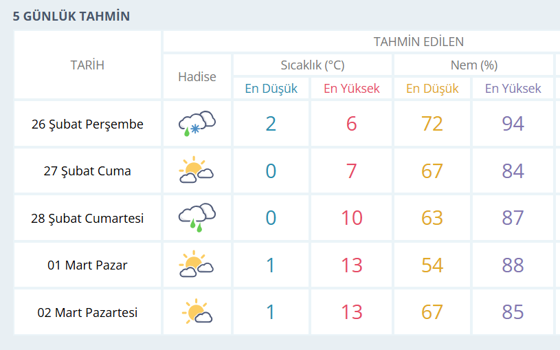 BURSA İÇİN 5 GÜNLÜK HAVA DURUMU TAHMİNİ