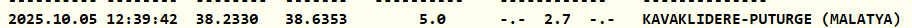 Kandilli Rasathanesi'nin resmi internet sitesi üzerinden alınan bilgilere göre deprem saat 12.39'da 2.7 büyüklüğünde gerçekleşti. Pütürge merkezli deprem yerin 5.0 kilometre derinliğinde meydana geldi.