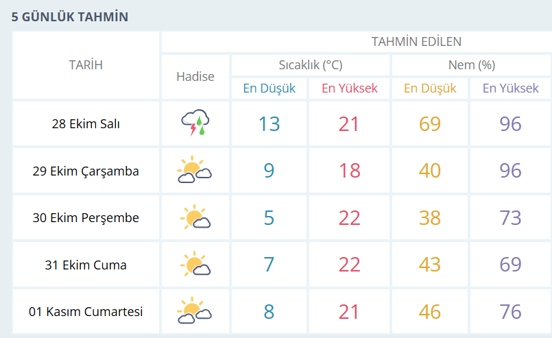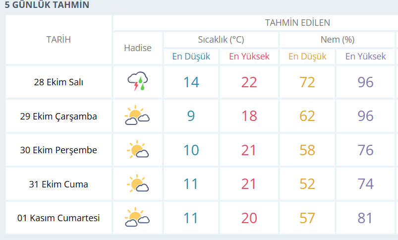 BURSA İÇİN 5 GÜNLÜK HAVA DURUMU TAHMİNİ