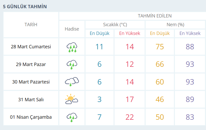 BURSA İÇİN 5 GÜNLÜK HAVA DURUMU TAHMİNİ