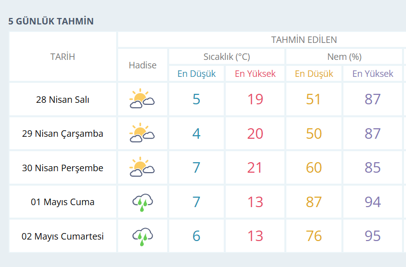 BURSA İÇİN 5 GÜNLÜK HAVA DURUMU TAHMİNİ