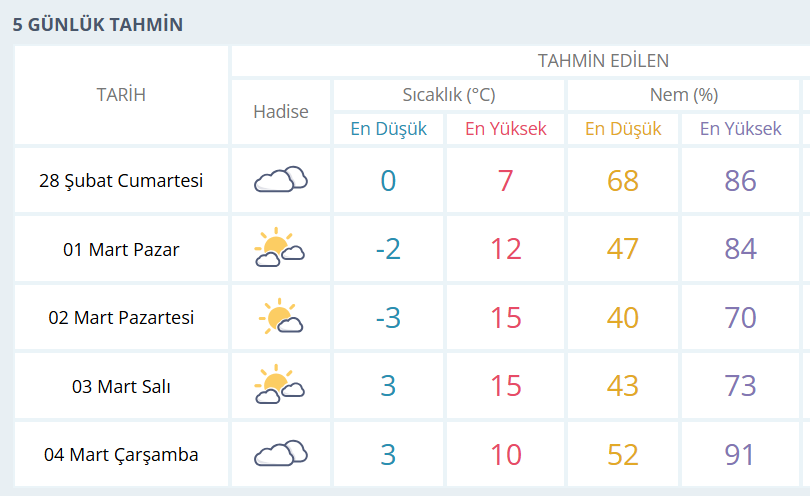 BURSA İÇİN 5 GÜNLÜK HAVA DURUMU TAHMİNİ