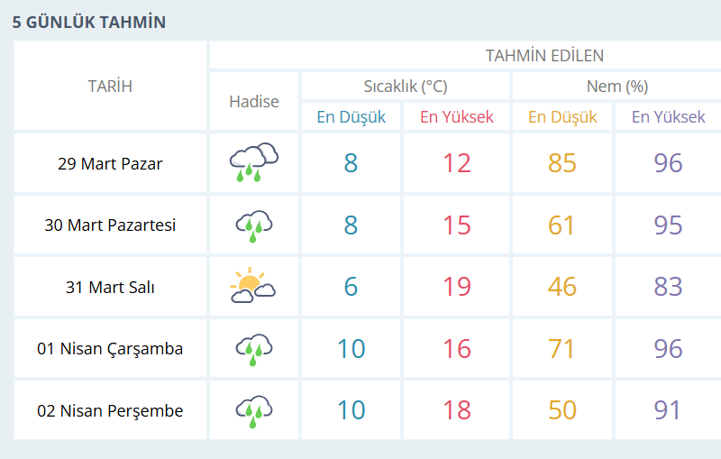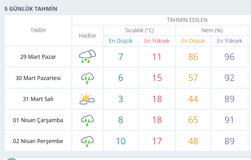 BURSA İÇİN 5 GÜNLÜK HAVA DURUMU TAHMİNİ
