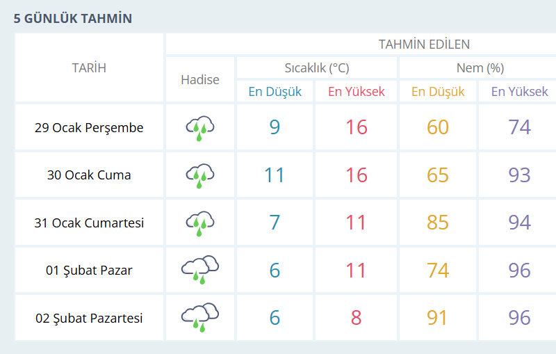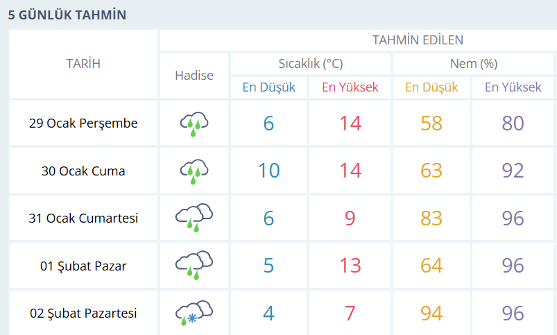 BURSA İÇİN 5 GÜNLÜK HAVA DURUMU TAHMİNİ