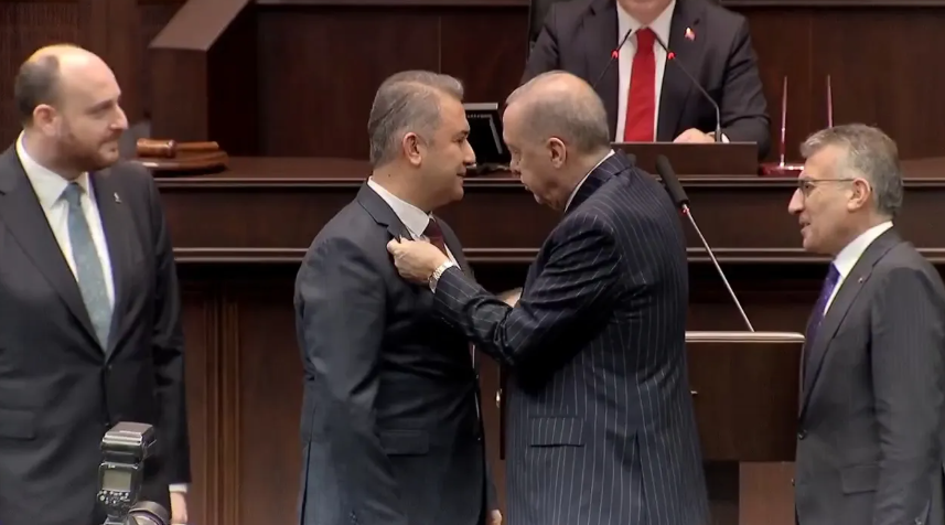 CHP'den Hasan Ufuk Çakır, Gelecek Partisi'nden İsa Mesih Şahin ve DEVA Partisi'yle yollarını ayıran İrfan Karatutlu, Cumhurbaşkanı Erdoğan'ın rozetlerini takmasıyla birlikte AK Parti'ye geçti.