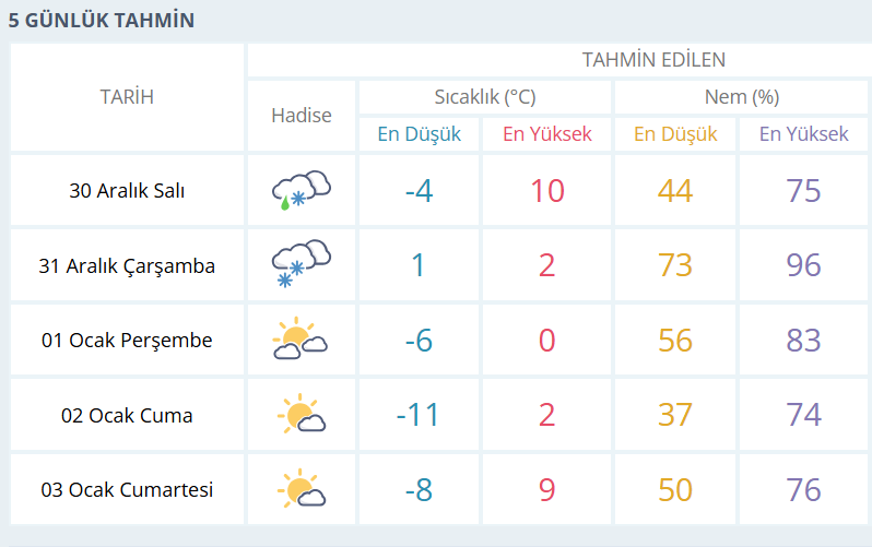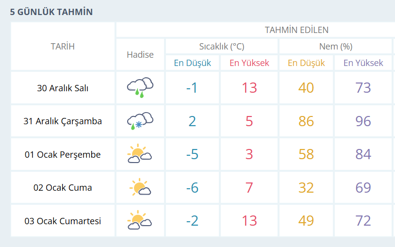 BURSA İÇİN 5 GÜNLÜK HAVA DURUMU TAHMİNİ