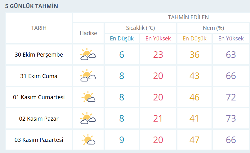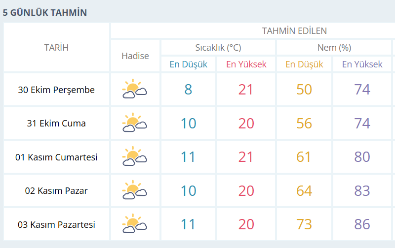 BURSA İÇİN 5 GÜNLÜK HAVA DURUMU TAHMİNİ