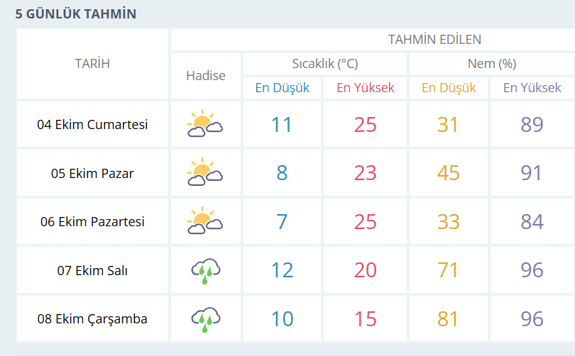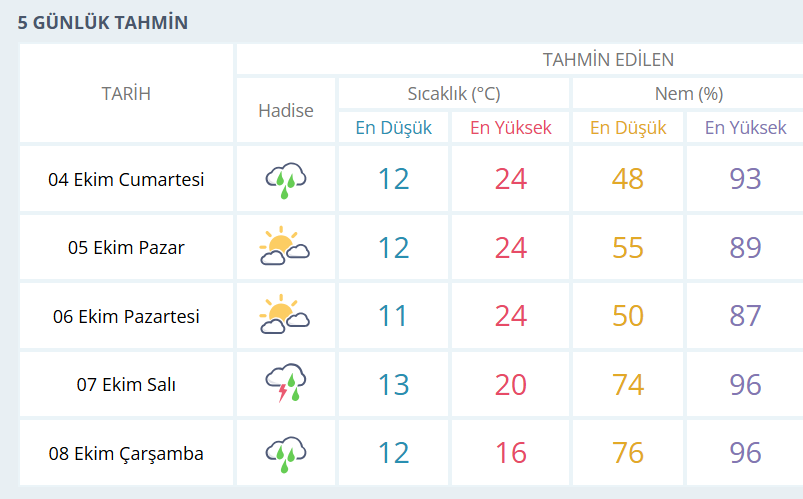 BURSA İÇİN 5 GÜNLÜK HAVA DURUMU TAHMİNİ