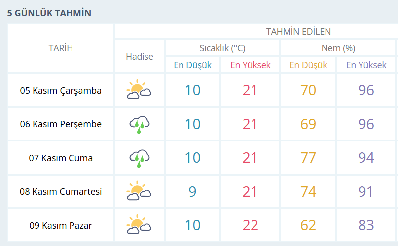 BURSA İÇİN 5 GÜNLÜK HAVA DURUMU TAHMİNİ
