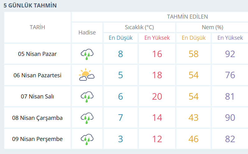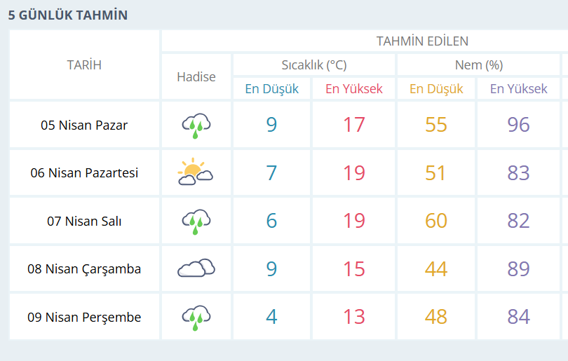 BURSA İÇİN 5 GÜNLÜK HAVA DURUMU TAHMİNİ