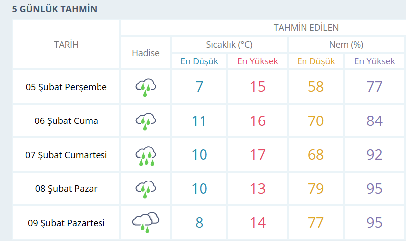 BURSA İÇİN 5 GÜNLÜK HAVA DURUMU TAHMİNİ