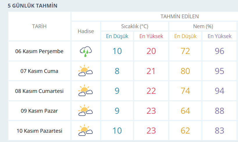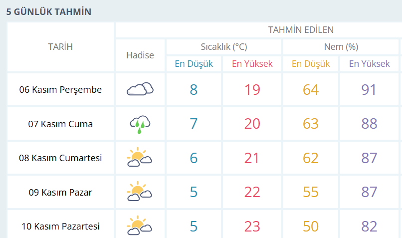 BURSA İÇİN 5 GÜNLÜK HAVA DURUMU TAHMİNİ