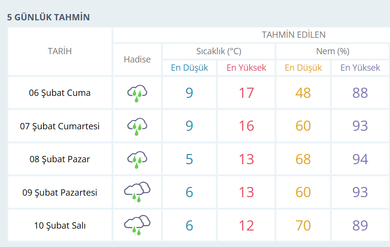 BURSA İÇİN 5 GÜNLÜK HAVA DURUMU TAHMİNİ
