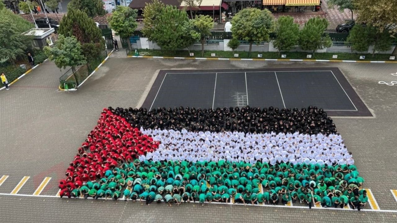 Millî Eğitim Bakanlığı tarafından tüm okullara gönderilen genelge kapsamında, Şehit Piyade Onbaşı Orhan Tezcan İlköğretim Okulu’nda anlamlı bir etkinlik düzenlendi. 600 öğrenci, Filistin’e destek vermek amacıyla okul bahçesinde bir araya gelerek dev bir Filistin bayrağı oluşturdu.