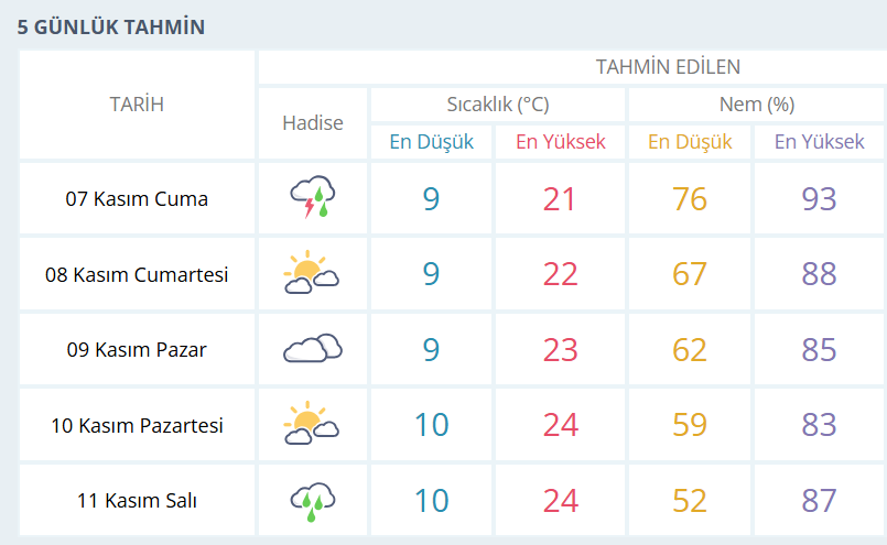 BURSA İÇİN 5 GÜNLÜK HAVA DURUMU TAHMİNİ